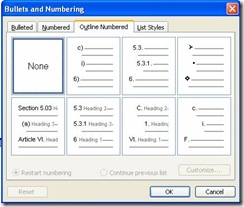 Untuk membuat Bullet, Nomor dan Outline sebelumnya kita pilih dari menu Format, Bullets and Numbering